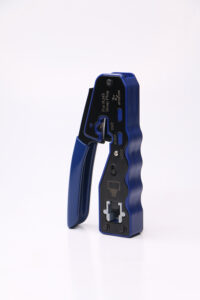 Our professional crimper crimps 8 pin RJ45 plugs and RJ11 or RJ12 Crimp ends. Designed for through style (EZ) crimp plugs. The modular crimper has ratchet action with rounded cable stripper as well as cable cutter.